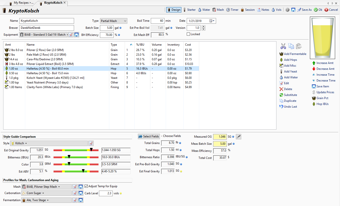 For my first post, I submit KryptoKölsch. Let’s start off with the build: