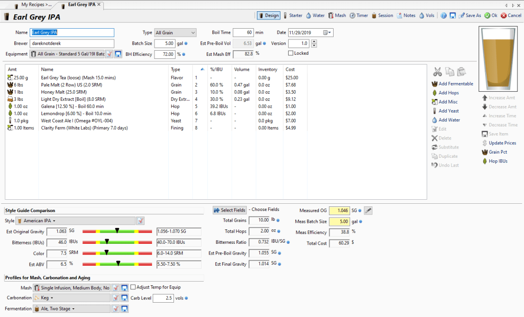 Like we mentioned in a recent tweet, we’ll be consolidating the recipe builds and their reviews into single posts now. For my first submission to that, I present my Earl Grey IPA recipe. Let’s take a look!