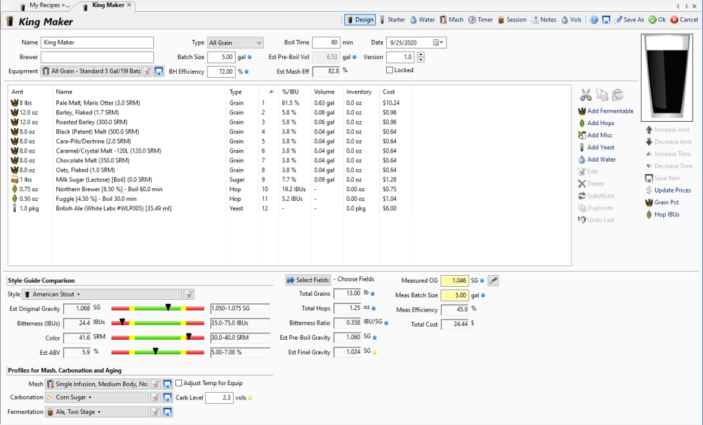I’ll be honest – King Maker is far from my best brew (naming a beer that perhaps tempted the fates a bit too much) but there’s nothing particularly offensive about it either. The truth of the matter is this is a sweet, malty milk stout but it isn’t really all that interesting. I do believe it would have benefited massively from more carbonation – a craft I’m slowly relearning after the opening of the second brewhouse and its lack of force-carbing equipment.