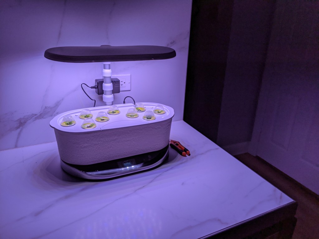 P.S. – For our more perceptive readers, you’ll notice this photo’s background is different than what I’ve typically used. I recently bought an aerogarden to grow lettuce, occupying the space I’ve used for photos in the past – check out the new hell I live with below: