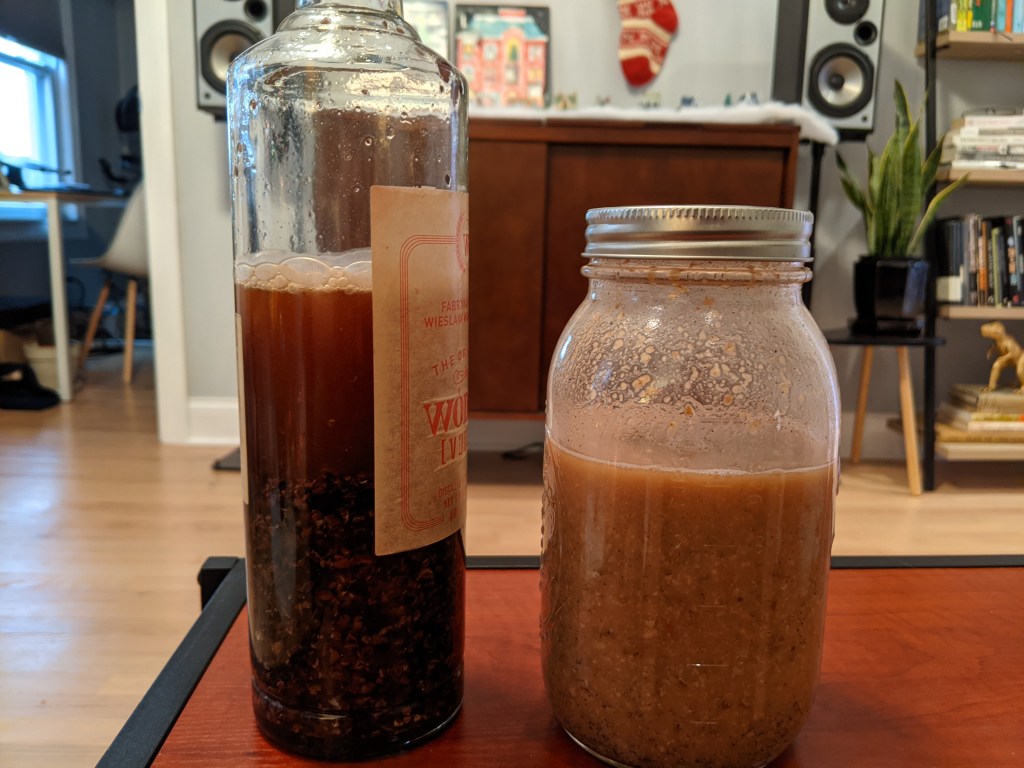 An English dark mild seemed only appropriate. To bring it closer to the cookie’s flavor, I decided to introduce two tinctures into the mix – one, a cocoa nibs and vodka, the other, unaged brandy with pecans and Moroccan vanilla beans.
