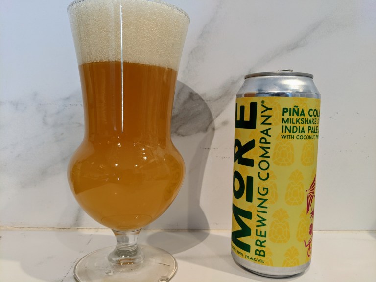 The fruited nature of the beer means the can instructs you to gently roll it prior to opening. After complying and rolling the can across the table, I poured the wonderfully smooth, hazy beer into the only glass I deemed appropriate – our Rainforest Cafe chalice. This beer clocks in at 7%, which means it is no slouch, but coconut and vanilla dull the sharp edge of the pineapple and higher alcohol. While it is quite obviously Piña Colada inspired, I was glad that MORE had seemed to intentionally remind the drinker that this was still a beer – not just some malt liquor with flavoring.